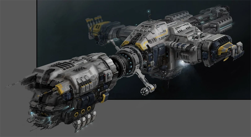The Outrider-class transport ship is a light multipurpose transport boat class produced by Concord Shipyards. It is an unremarkable series of transport vessels, considering the model's uninspired, crude-design, and proficiency in only two fields: the mining of metal ores from asteroids and salvaging resources from shipwrecks. It saw a brief period where it was distributed on the civilian market before being recalled for a number of consumer product safety violations. Some 300 ships of the line were produced before its production ceased. Despite their rarity, some of these ships are still in existence. Many of them have long since been acquired and repurposed by smugglers, pirates and mercenaries. To such criminals, not only do they go cheap on the black market, but they serve their purpose well. They are easily disguised as run-of-the-mill mining vessels, serving their crew well during ambushes and permitting them to be overlooked by the authorities.